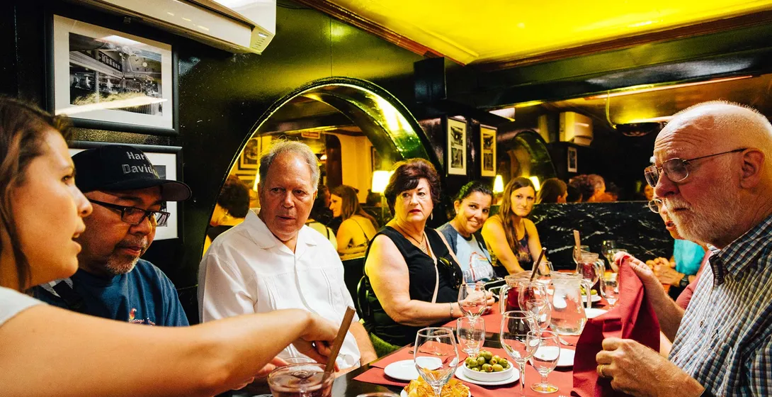 Stop 1 - A restaurant is inspired it’s Catalan owners love for tomatoes Stop 2 - A cozy space to savor traditional Catalan and Spanish tapas, Barri is inspired by the old cellars where locals would gather. Stop 3 - A Tavern specialising in recipes from Euskadi. Stop 4 - A restaurant with decor inspired by Feria de Abril in Seville, the birthplace of flamenco and sevillanas. Stop 5 - A very historical place where even the furniture is protected by law! Stop 6 - A hidden gem of contemporary Catalan cuisine Stop 7 - A hole-in-the-wall space serving very traditional catalan cuisine Stop 8 - A former motorbike workshop now a vibrant bodega-bar Stop 9 - A restaurant famous for its Pintxos